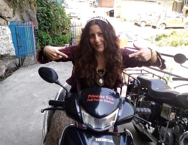 Eva has been traveling the world for over a year with no phone. She drives around Manali in a scooter with a tiara and decal on front reading: Princess Eva: Full Power Bitches! When asked why she likes India, Eva replies in thick French accent, “Uhh, I don’ know? Zare are no rulezz!”