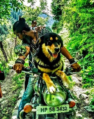 We head to Basecamp Nirvana for the after-party. It’s a motorcycle hostel owned by a guy named Ronnie from Delhi. He listens to rock-and-roll and has a mountain dog named Loki who rides on the front of his bike.