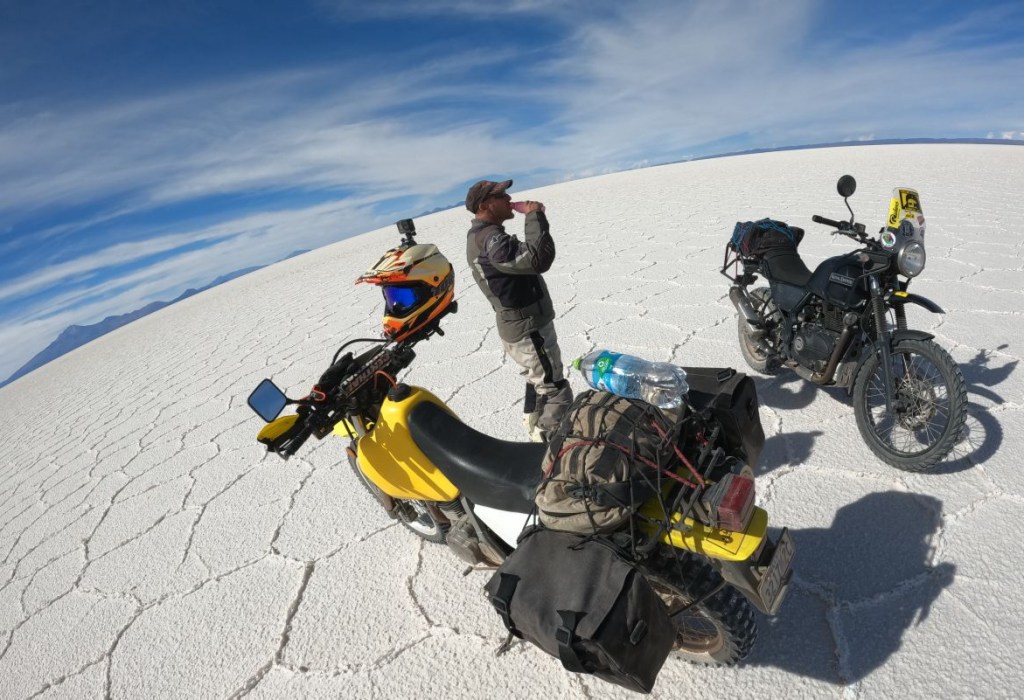 The Uyuni salt desert (Salar) has been my prime destination for Bolivia. But I never did any real research or planning so when I roll into the dusty town of Uyuni, I’m left clueless. Luckily, a 57-yr-old British / Bolivian motorcycle guide named Robin sees me wandering the streets and offers his services.