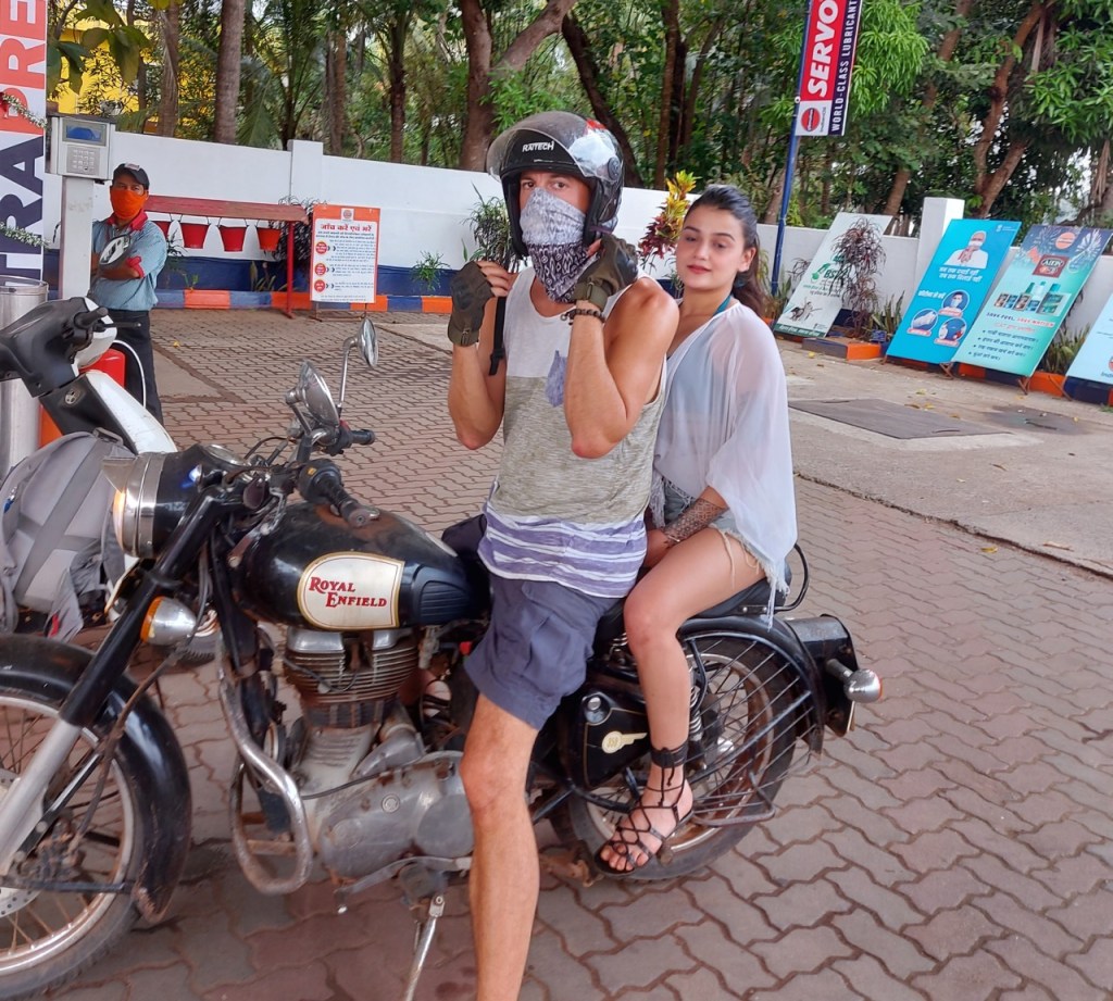(Me and Richie re-fueling the Royal Enfield Classic 350)