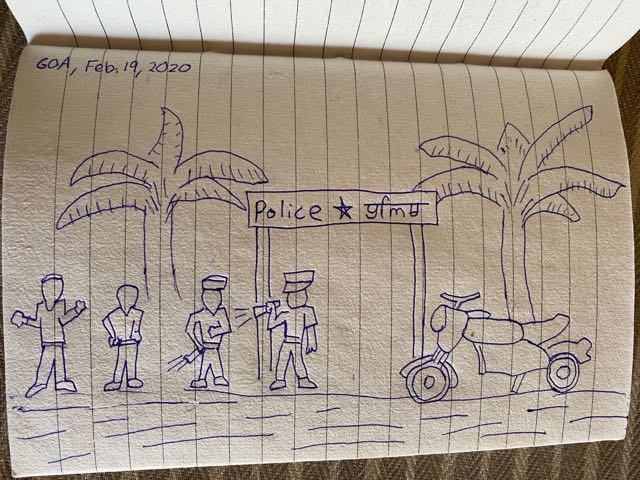 The next evening, we head out to dinner, and ride straight into a checkpoint by the police station. We’re not wearing helmets, as required, and still have drugs in our pockets, which they find. After some bartering near the bushes and a trip to the ATM, we settle on the fine of 25,000 rupees, or about $350 dollars split between us.